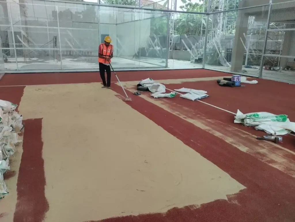 Pengerjaan Permukaan Lapangan Padel oleh Bangun Lapangan di Jakarta